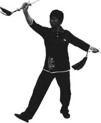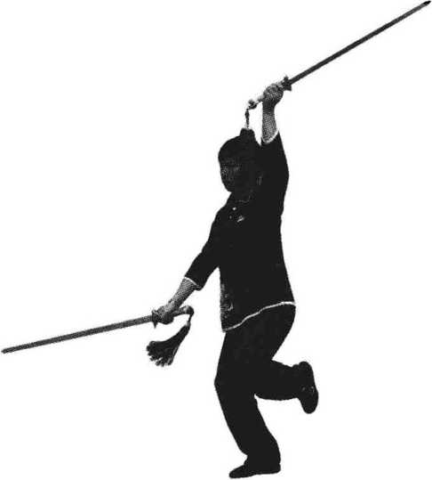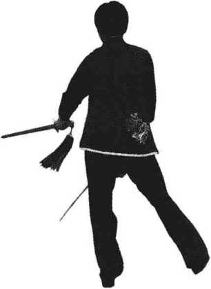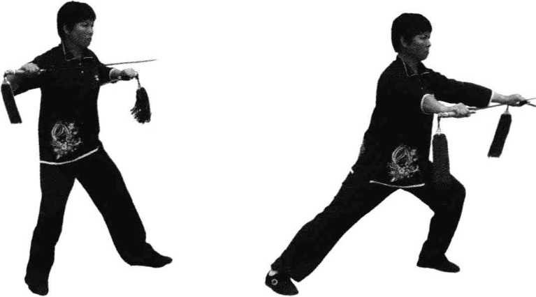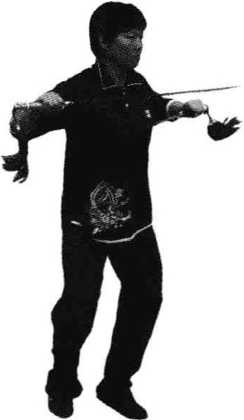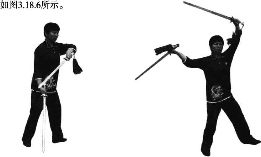图3.18.5右腿后撤 图3.18.6双剑向上