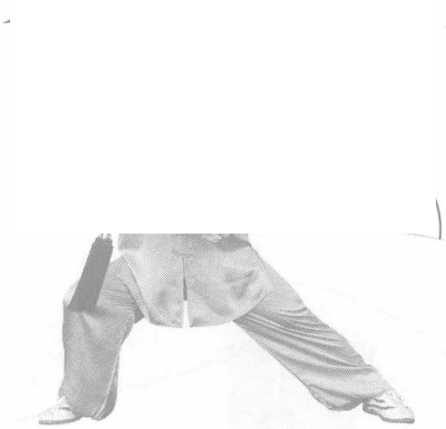 图 3.2.39图 3.2.39图 3240图 3240图 3.2.41图 3.2.41心移至右腿成弓步,同时右手握剑向上、向右转至右侧前 方。接着,左脚尖外摆,重心移至左腿,屈膝塌劲,身体左转, 胸向七点半钟,右脚抬起随转体向左上一步成左偏马步;同 时右手握剑随转体向左下抹剑至身体右前方,手至右膝内 上方,手心向上,剑柄齐腰,剑尖斜向右前方。目视剑尖方 向,耳听身后。(图3240、图3241)
