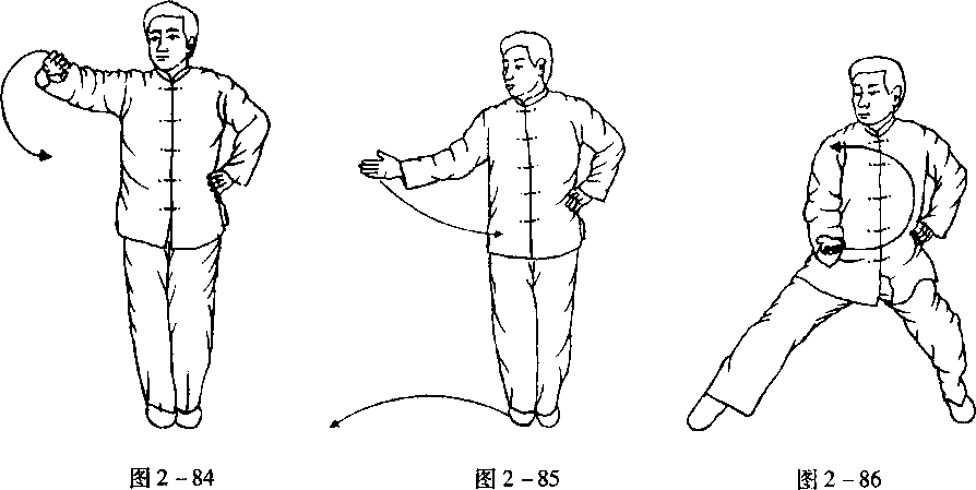 右横开步同左横开步,动作要领相同,惟方向相反。(图2 -84至89)