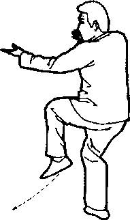 提至左肩上方,右掌变拳外旋由右上方向体前下击。(面向西北)