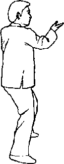 口令2(图1 -517) 右脚提起向前落于左脚内侧,脚尖点地,右手向前至腹前。