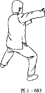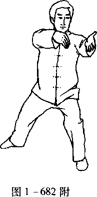 至右腹前。至右腹前。图 1 一677图 1 一677图 1 -678图 1 -678图 1 -676图 1 -676图 1 -679图 1 -679口令 2(图 1 -680、681) 心向里。(面向东北)口令 2(图 1 -680、681) 心向里。(面向东北)重心迅速移至左腿,身体左转,同时两拳向左前方用力发出,拳