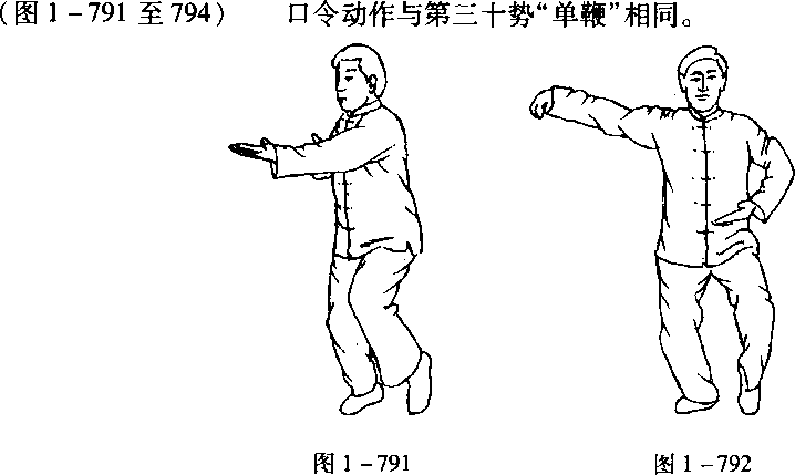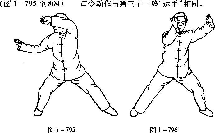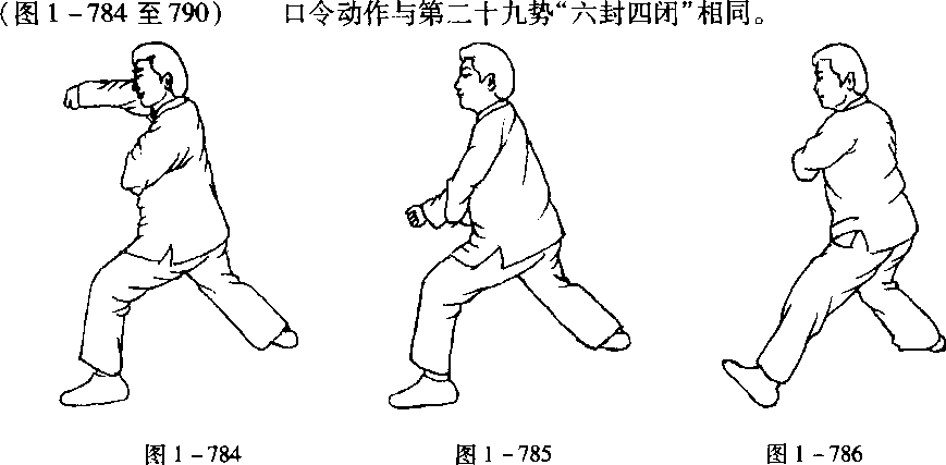 (图1 ~773至783) 口令动作与第二十八势“掩手肱拳”相同。