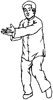向上划弧至左侧与肩平,掌心向外。