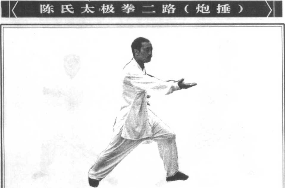 '3.以右掌缘向下劈砍为主,左臂屈肘向后击发为辅。两 臂在意念中是相通的,右掌下砍,劲力来源是拧腰一转,左臂 劲力通过腰脊运送到右臂去。