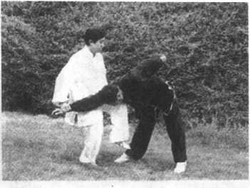 图 6—23手向后引带,同时起左 膝撞其胸部(图6- 23)0