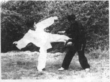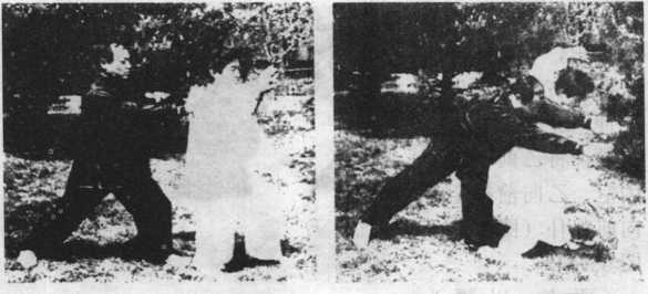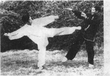 甲、乙对峙,甲 方左手一晃,欲出右 手击乙,乙身体略向 后仰,甲见乙已出拳 掌攻击范围,速提起 左腿猛蹬乙胯部,使 乙向后跌出(图6— 39 ~ 图 6—42) o要点:近用手 肘,远则用足。闪空劲乙从甲背后用双 掌推甲,甲身体突然 左转,右手右臂向前 下伸,左手左臂向后 上领,将乙前推之力 闪空,乙向前推空必 向前栽仆(图6—43、 图 6—44)。要点:以腰为 轴,斜中求正。图 6—41图 6—42图 6—43 图 6—44太极李向先就论太极李向先就论