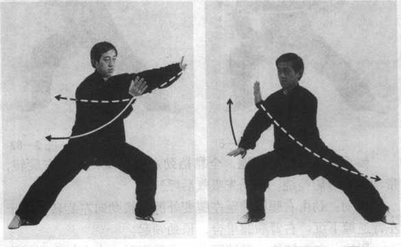 内劲:劲以腰左转缠于两手,左逆右顺。