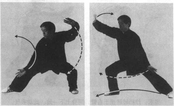 内劲:由裆转至腰,由腰缠至左臂,右手合。