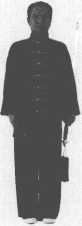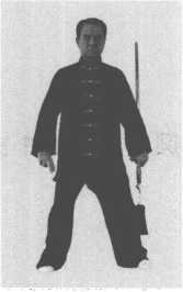 (1)(面向南方)两脚并拢,身 体自然直立;两臂松垂于身体两侧, 左手持剑,剑尖向上;右手握成剑 指;目平视前方。(图2-1-1)