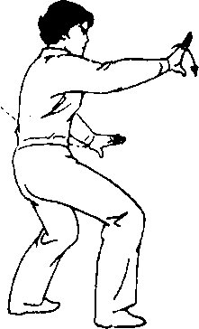 【击法】对方右拳向我胸部击来,我用左臂向右格开其臂,用右 拳从左肘下暗击其肋部或胸窝。