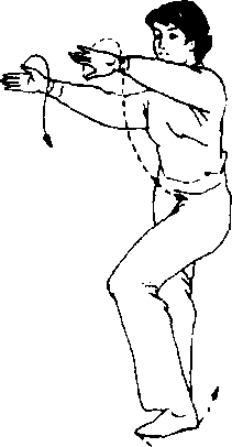 (11) 上动不停,上体微右 转,重心移于右腿。同时两掌随 体转向下、向左划弧,掌心朝后 下方,指尖朝前下方。目视右掌 方向。(12) 上动不停,上体左转 (胸朝西南),重心移至左腿后 继续下蹲,右脚向左横跨一步。 同时两臂微屈,左掌内旋,右掌 外旋,两掌同时向上、向左划 弧,左掌伸于身体左前方,同肩 高,掌心朝左前方,指尖朝右前 方;右掌于胸前,掌心朝左前 方,指尖朝右前方。目视右掌。丁步收掌丁步收掌丁步收掌丁步收掌