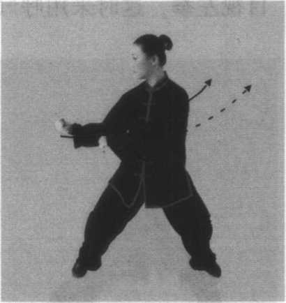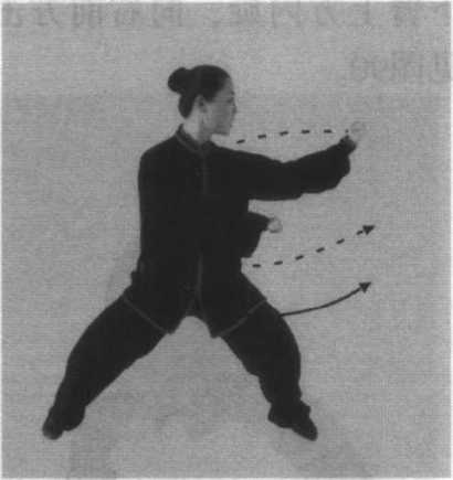 注意两拳在左右转动时,两拳的距离要保持在一前臂 宽。左右发力横抖时,要用腰带动两臂,力达拳眼。