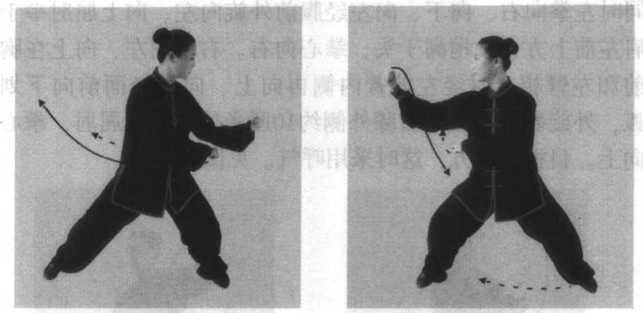 两臂合臂时两手要做顺缠。两臂打开时两手要做逆缠。 发拳时要快速有力,力达拳面。