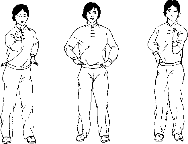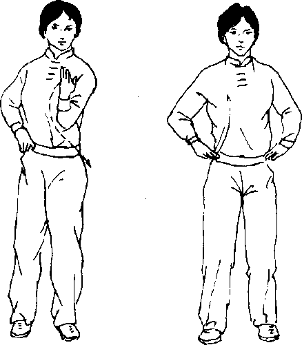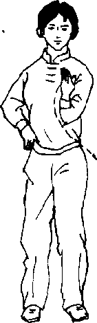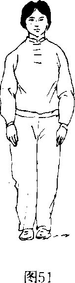 (1)并脚站立:胸朝南,两脚并拢站立。目视前方。 (图 51)