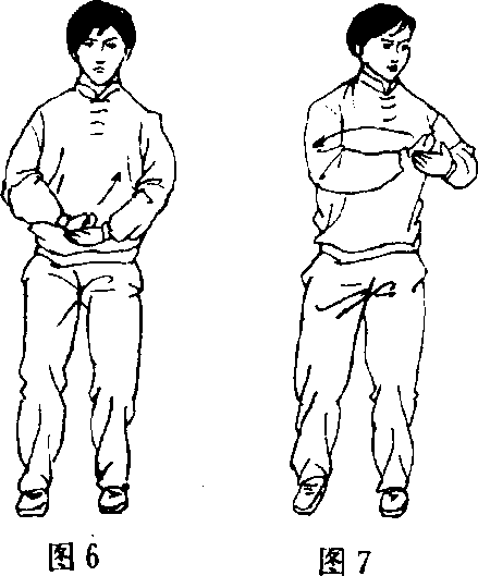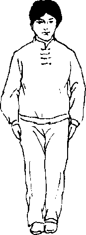 【要求】虚领顶劲、胸背舒展, 敛臀收腹,呼吸自然。练此桩功, 时间可长可短,主要起到套路动 作预备式之作用。