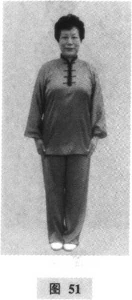 (1)并脚站立:胸朝南,两脚并拢站立。目视前方。(图 51)
