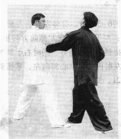 作用:撤步捋采。假设有人用左手向我胸部进攻,我抬起 左手捆接,对方见手被捆住,无法按其胸部,迅速抬起左脚向 前上步,改为肩靠,我迅速提起左脚向后撤步,左手采其腕向 左引采,抬起右手捋其左臂;对方见靠势又被化解,又用右手 向前进攻,我用右手向前捆接,顺势向右后引采,松开左手按 在其左臂上,同时抬起右脚向右后撤步,身体随之右转,接着 将其向右后捋出。