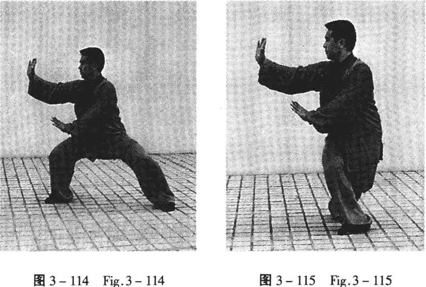 3.22. 2 开步撑掌(见图 3 - 114)。Open step and stretch palms(Fig,3- 114).