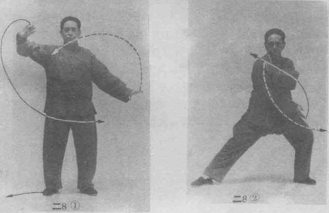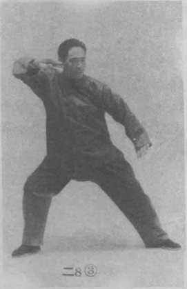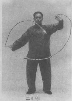 向左开步时动作与之相同,惟方向相反(图二8④⑤ ⑥兀缠丝动作停止后接做收式。