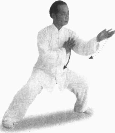 要 领:速度较前两个动作慢,方向要正,上下相合。左手 在前上,右拳在里后下,要在前后中统上。