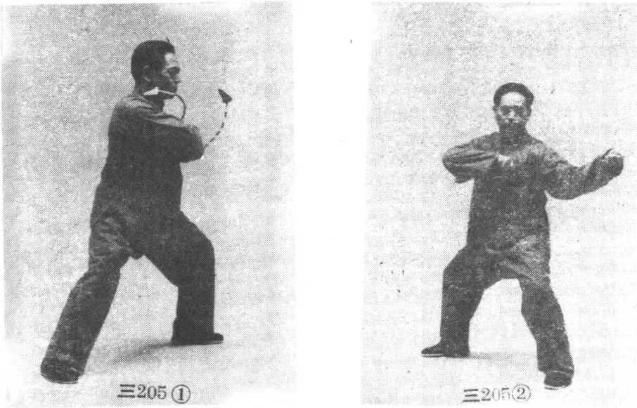 前臂沉于右膝内侧;眼看前厅° (图三208)