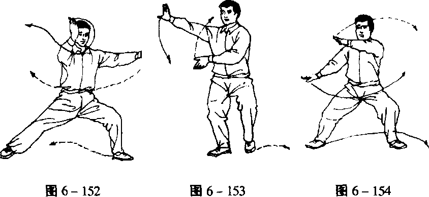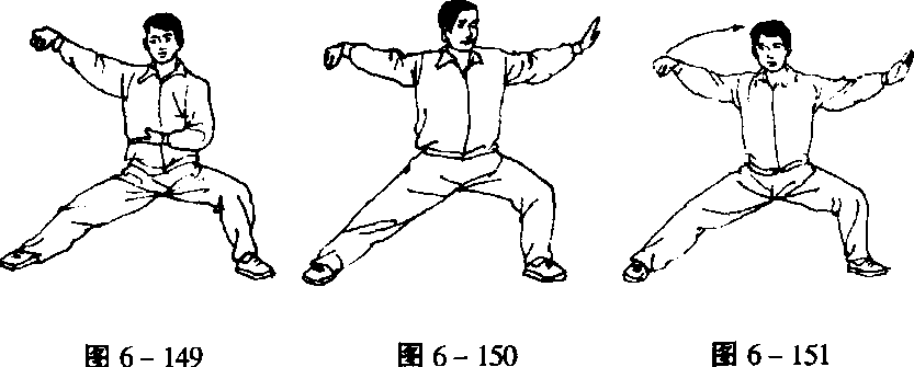 动作和要点皆与第五势“单鞭”相同。(图6-146^151)