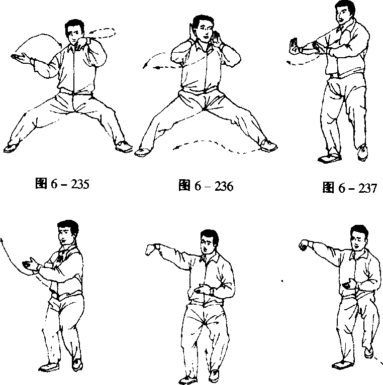 动作与第四势“六封四闭”动作2相同。(图6- 235 ~ 237)