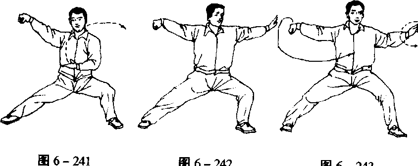 动作和要点与第五势“单鞭”相同。(图6-238^ 243)