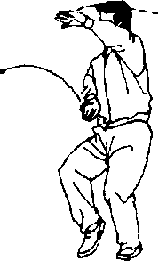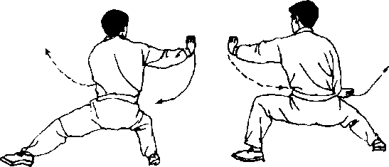 ③ 太极拳要求一物动作,都是由腰脊作主宰来运动,所以 气贴脊背是运动的核心。但对于背脊(如颈部七个椎骨)是最 不容易将它分开和揉动的,因此这一拳式,就是为了符合这个 要求而列入拳套的。
