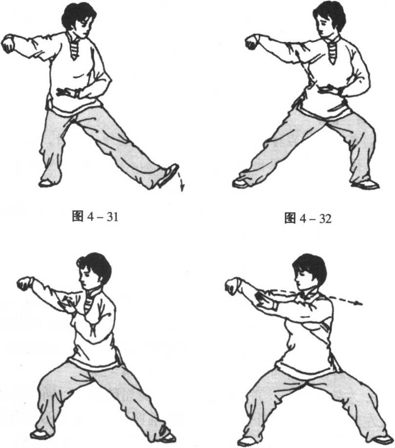 脚提起以脚跟内侧贴地向左铲出;眼看左脚。(图4-30. 4-