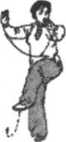 1. 擦脚下捋 右腿屈膝下蹲;左脚下落,脚尖翘起, 以脚跟内侧贴地面向左前方铲出;同时身体右转;随之左手外 旋;右手内旋同时向下、向右划弧置于腹前,指尖均朝左,掌