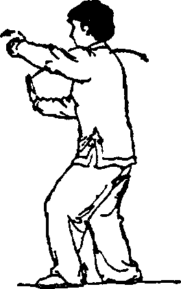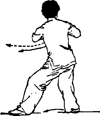 ⑤ 动作与第(二五)势“右连珠炮”技法③的动作左右 对称,方向相反(图143~图144)。
