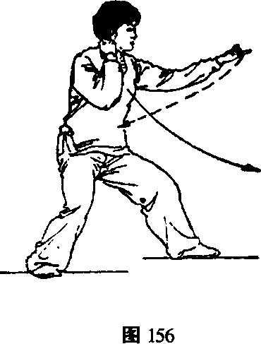 技法③旋臂开合(图155、图156);技法④左弓步下冲拳 (图 157) o