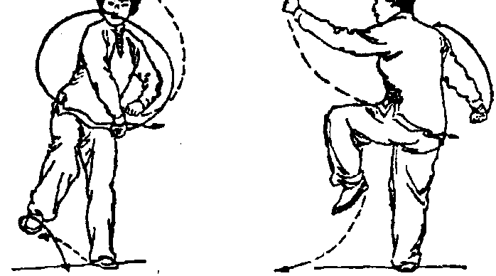 跳起转身落地要轻稳,换跳步不必过高,气不要上提; 分臂发力时,要沉肩、垂肘、气下沉,两拳松握制动方能产 生反弹劲。