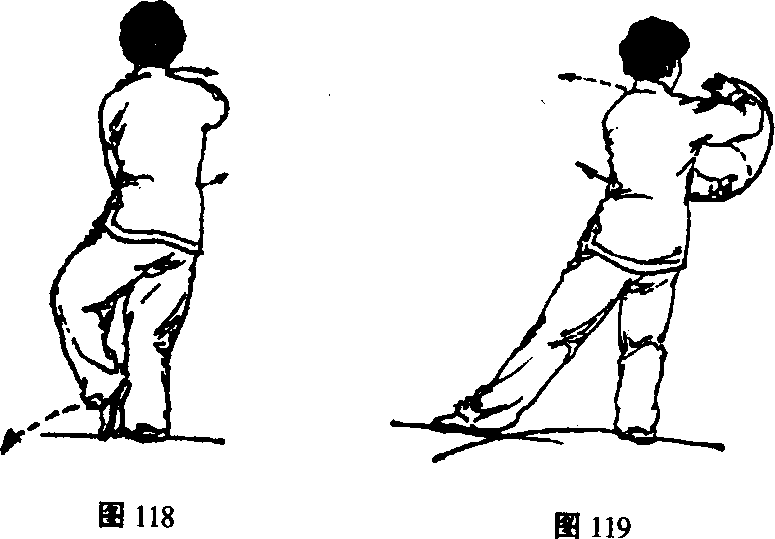 ④ 动作与第(二二)势“云手”④分动动作相同,唯左 右对称,方向相反,文字叙述略(图121 )0