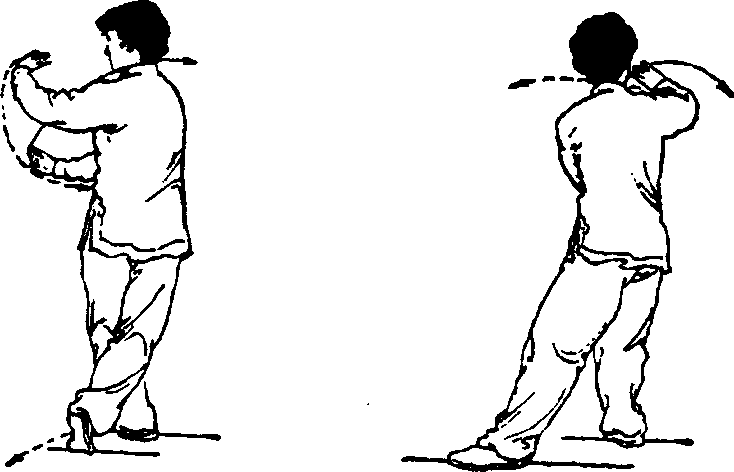 ③ 动作与第(二二)势“云手”③分动动作相同,唯左 右对称,方向相反,文字叙述略(图120)。