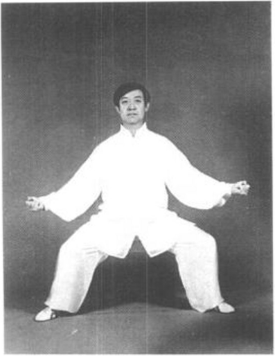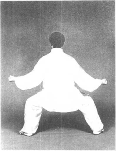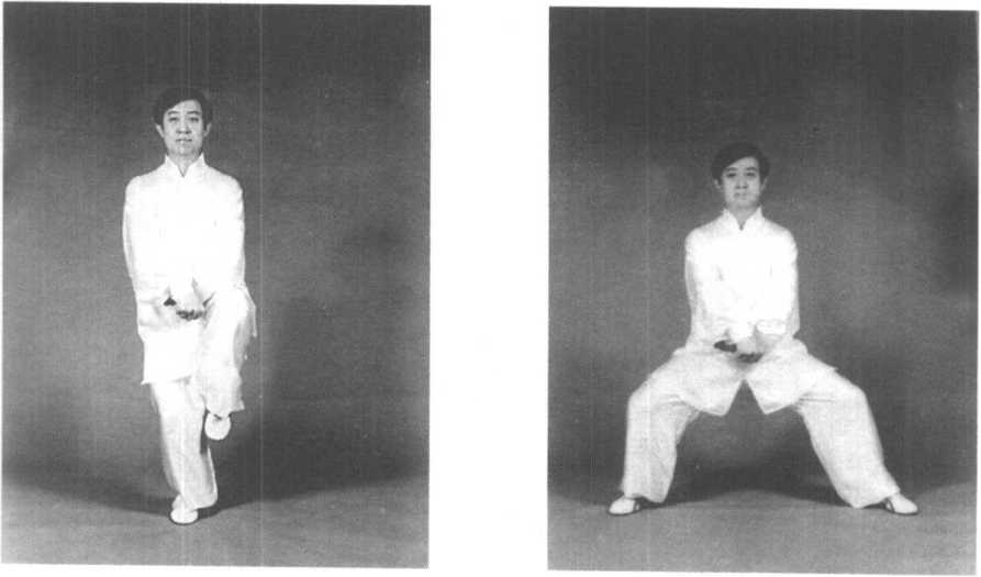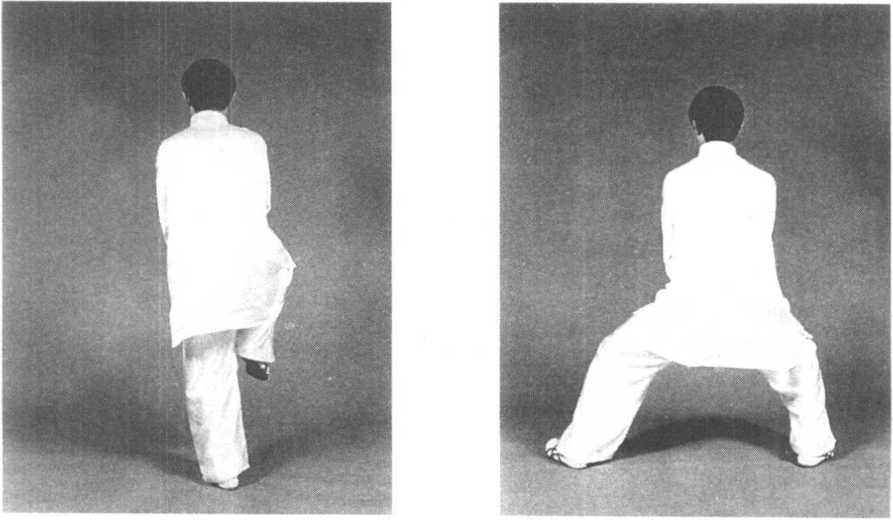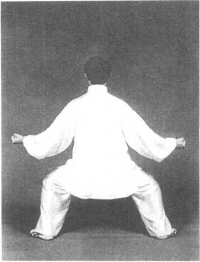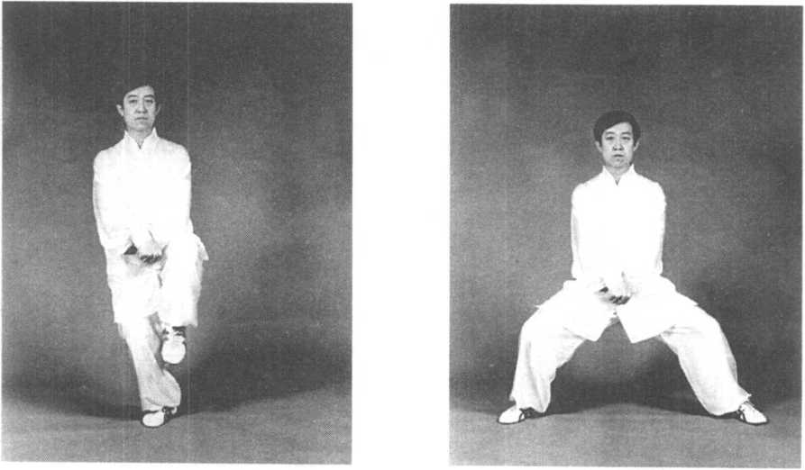 膝旁,拳心均向上。同时重心向左移,身体下蹲,目视前方兼顾两 旁(图3—71?图3—73)。