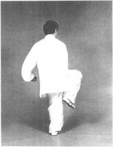 图 3—123图 3—123图 3—124图 3—124动作二:接上势,双拳变掌 右脚震脚落地,左腿提起向左侧偏