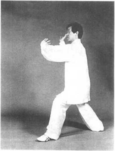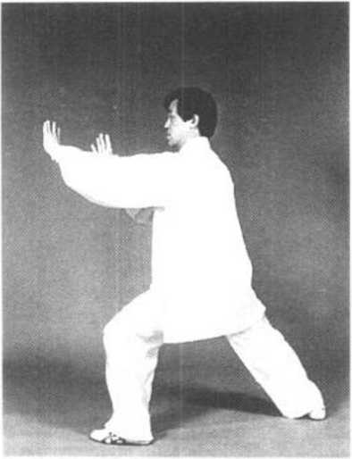 动作一:接上势,身体微左转,重心在左,右手走上弧与左手相 合;目视左前方(图2—215)。