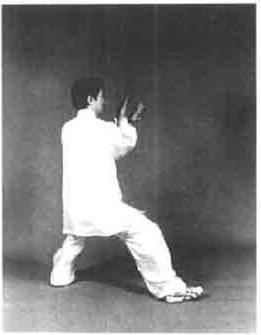 2 定势时由双肩肘的放松下沉使全身放松心气下降肩与胯合肘与膝合手与足合(所谓外三合)裆劲合好顶劲领起。