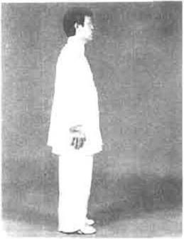 动作一两腿并立、两臂下沉于身体两侧周身放松意守丹田,目视前方(图1—39)