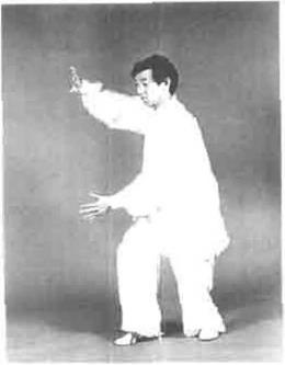 要求左手上掘和右手下合以及右腿开步要由身法带动协潮一致。裆劲开圆身法中正。此动先吸气后呼气。