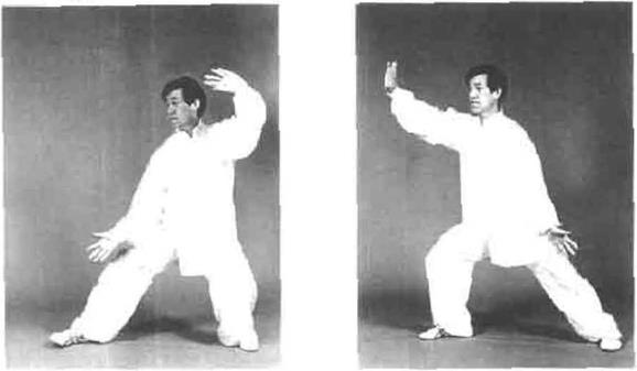 要求两手左撅要结合腰劲与收右脚一致。此动可打发劲,呼气。
