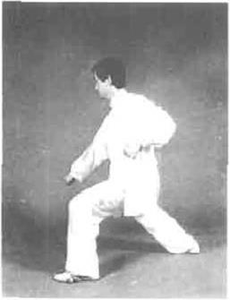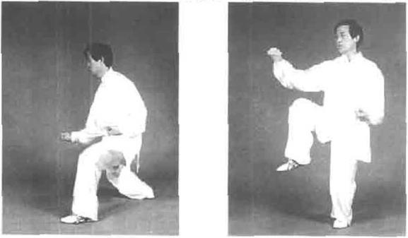 要求转身冲拳提腿周身协调一致劲力完整。此动吸气、