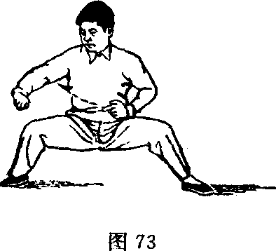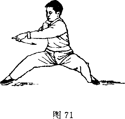 转,以近右肩的背部向右后靠;同时裆口更加下沉,眼视左 脚面。(图68)