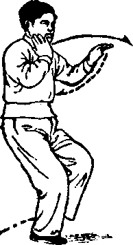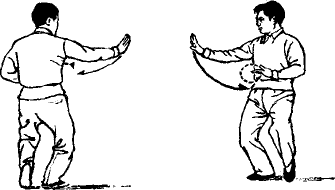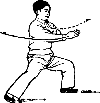 3 .当右手绕一小圈收至右耳旁时,须气贴脊背,先行卷 劲。只有卷足再放,才能放出一种旋转的按劲。