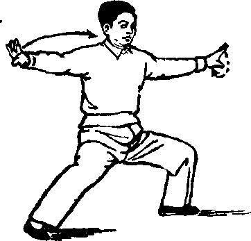 4 .此式在右手前推高探时,须具有支撑八面之势。此式 与斜行拗步的不同点是,斜行拗步的右手经右耳旁是向左右 分开的劲;而此式是前后开中寓合的劲,并要求在缠丝线路 中没有凹凸和内劲中断的缺点。
