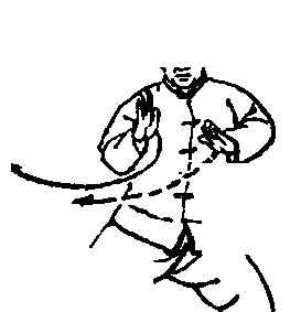 为上式是展翅的双开,因此本式首先须将它卷蓄起来。这是 为了蓄而后发。同时,为了发得更脆,在发劲前再缩小一圈, 以进一步加强它的弹性,然后沉着的发出劲去。发劲时,虽 然右足为实,但为了 “中土不离位”的中正关系,前足的实 与后足的虚要求相差不大,以便可以迅速旋转着向前迈进。