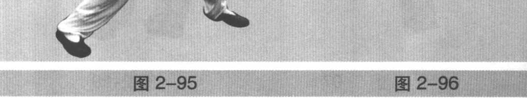 1 .这是难度较大的一个拳式,左腿铲地横扫一个360 度的大圆圈,切忌平旋,必须前半圈有由上向下的意念来 配合动作,后半圈又必须有由下向上提带的意念与动作来 配合,才能掌握平衡。